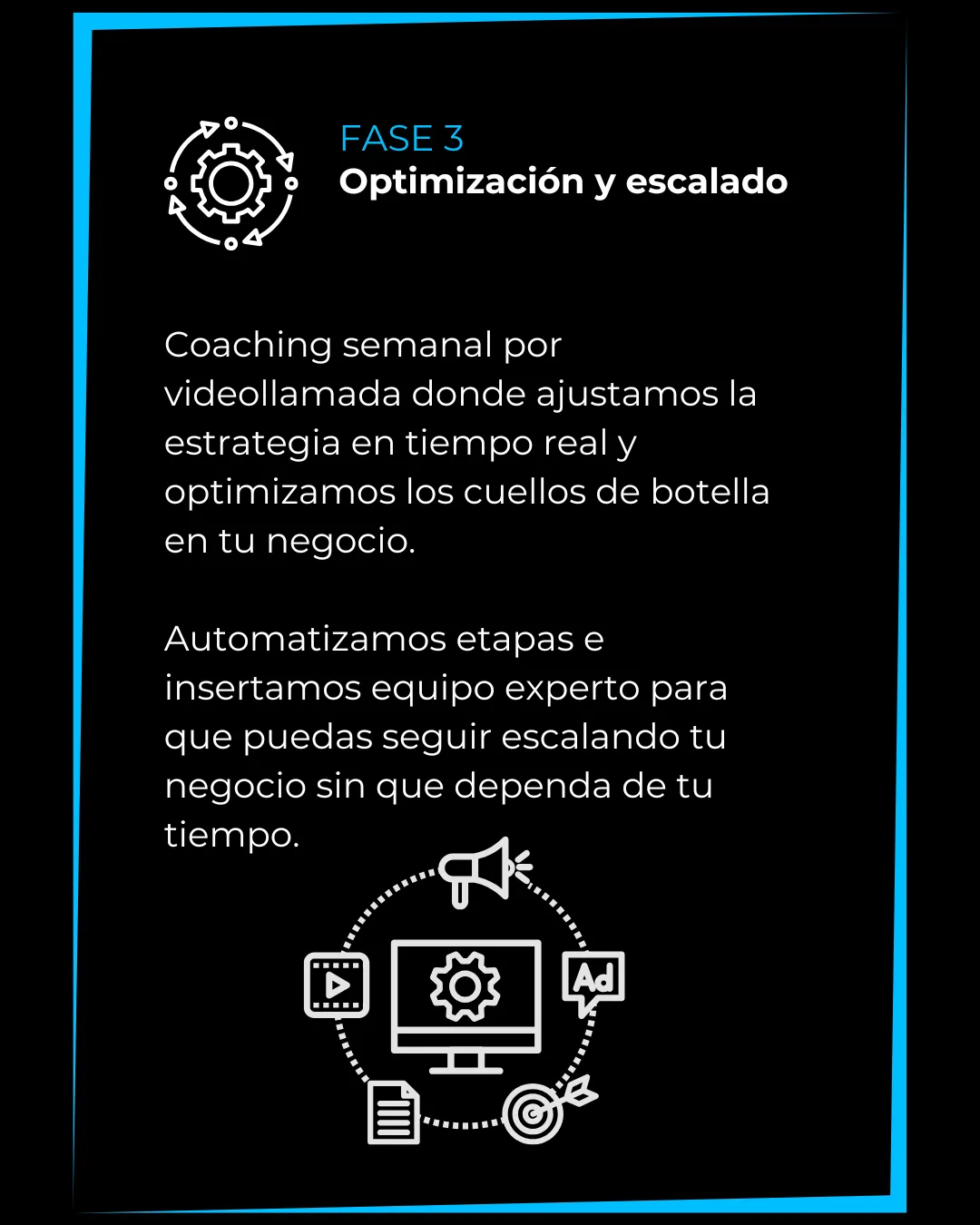 Céntrate en la entrega de servicio mientras nosotros te creamos el Sistema de 3 pasos que te permitirá escalar al siguiente nivel.
